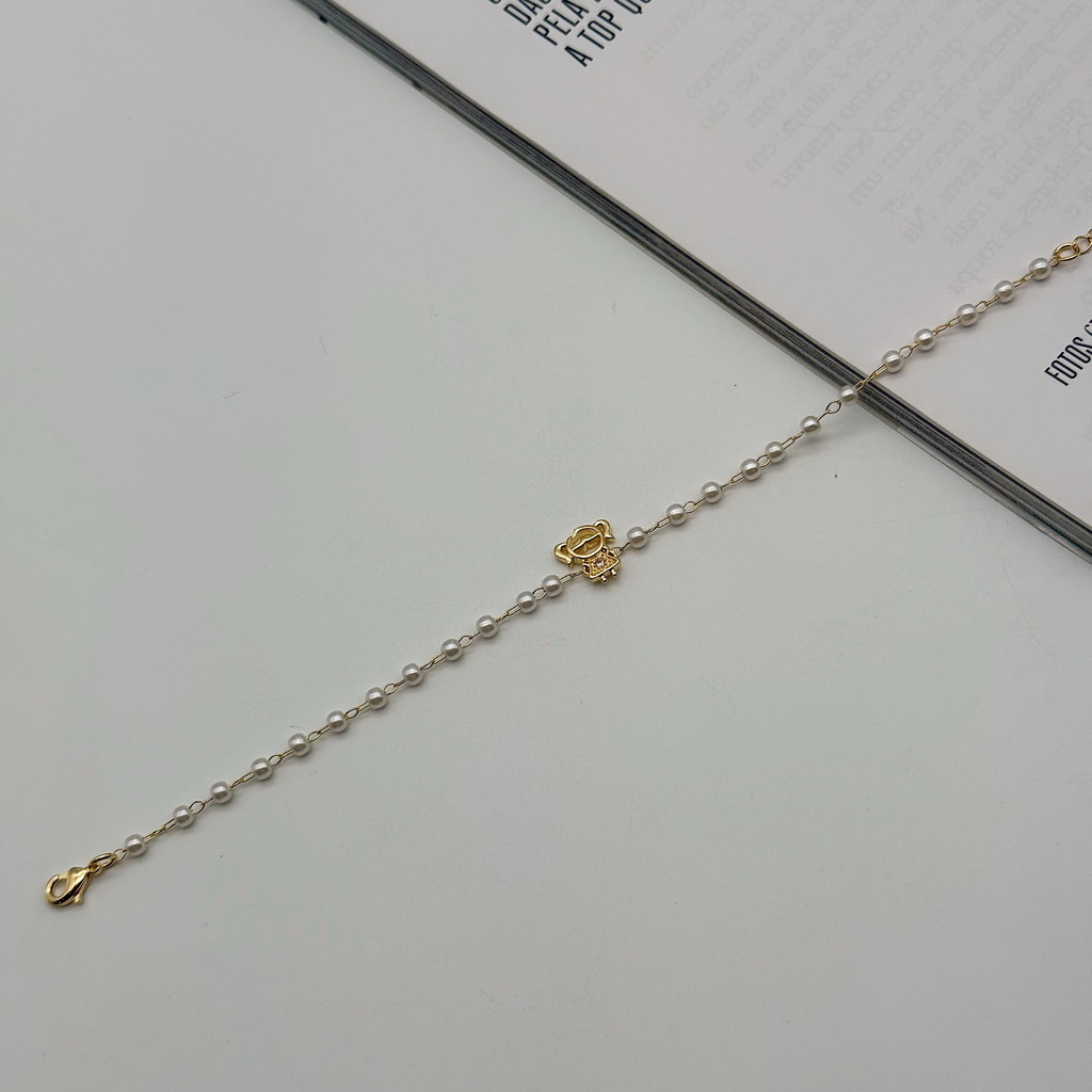 Descubra a elegância e o carinho em cada detalhe com nossas Pulseiras com um Filho ou uma Filha. Este acessório exclusivo é confeccionado inteiramente com pérolas delicadas, que conferem um toque de sofisticação e suavidade ao pulso.